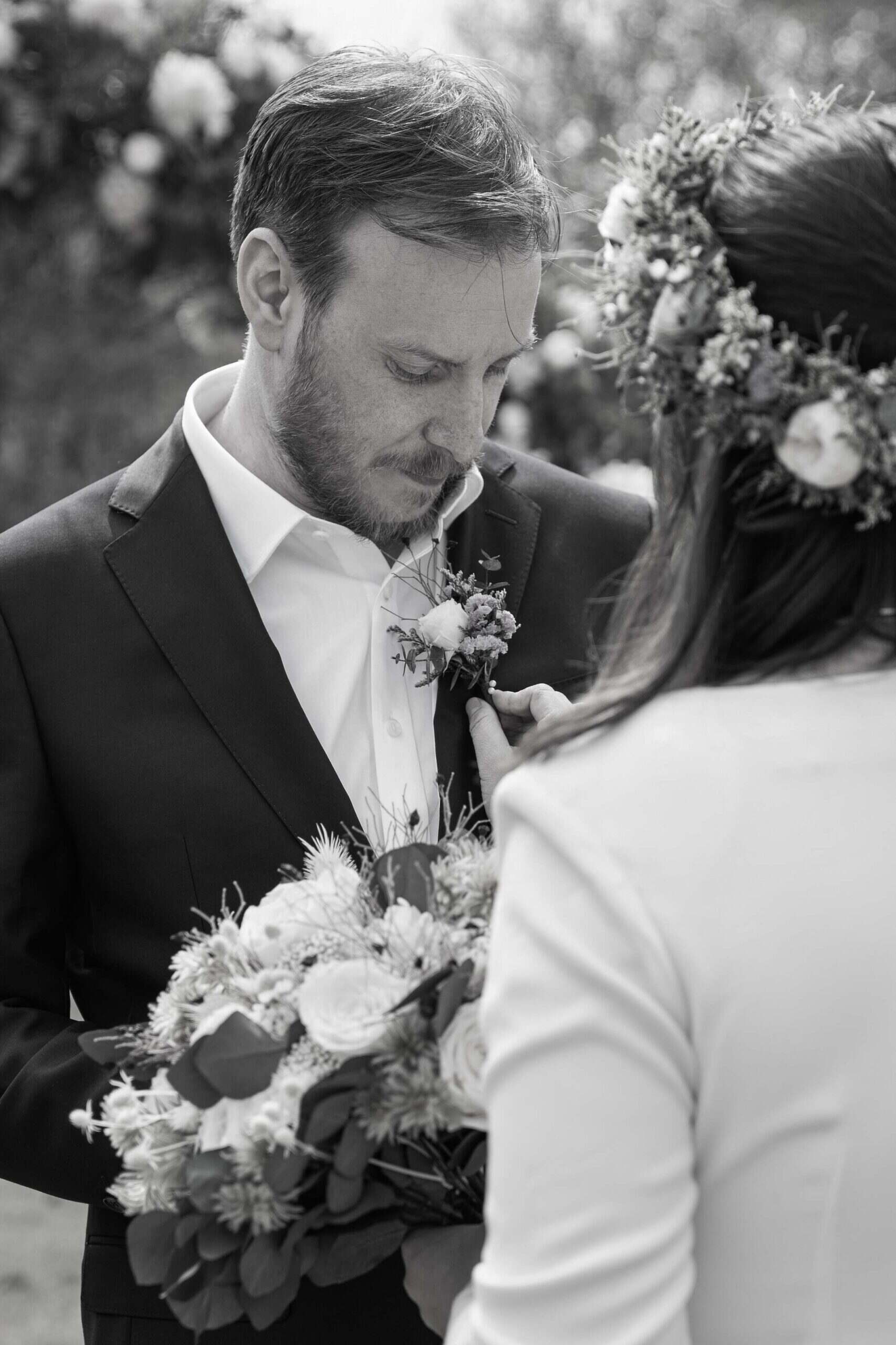 - Buttonhole flower - a small flower carried by the groom, best man and close family members. It is discreet but ties in the theme with the bride's bouquet.