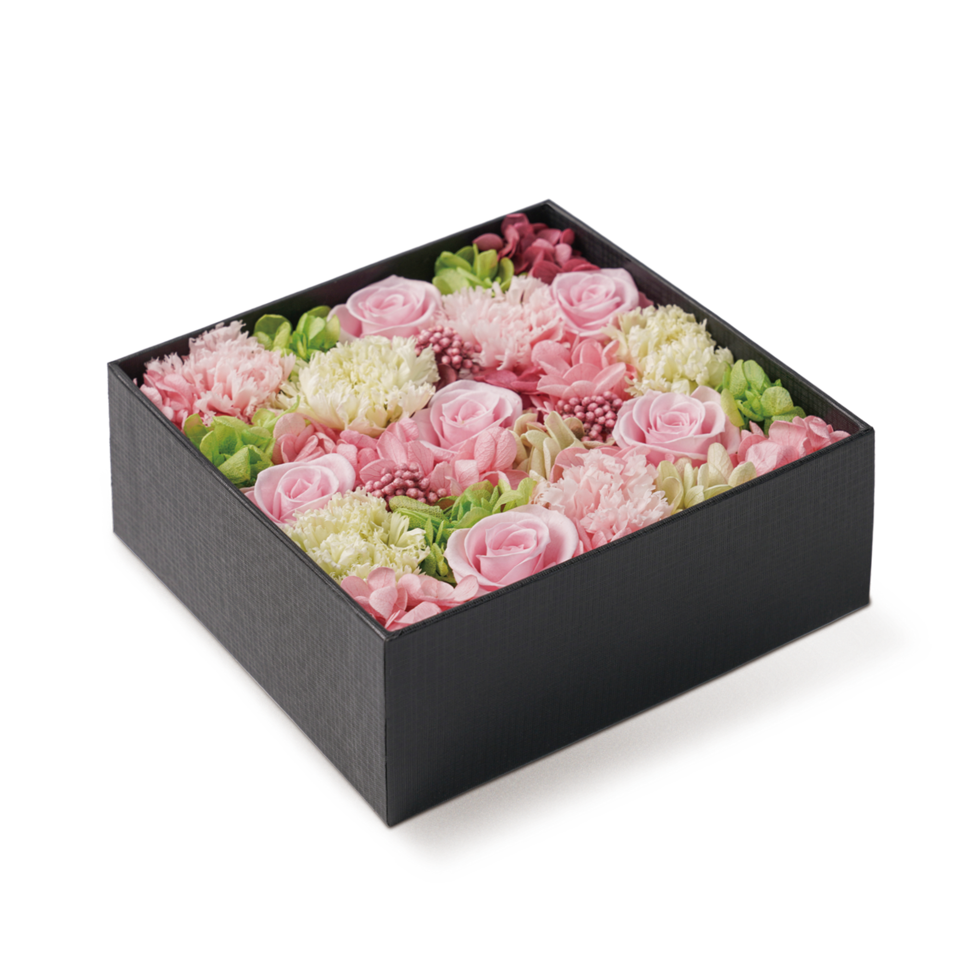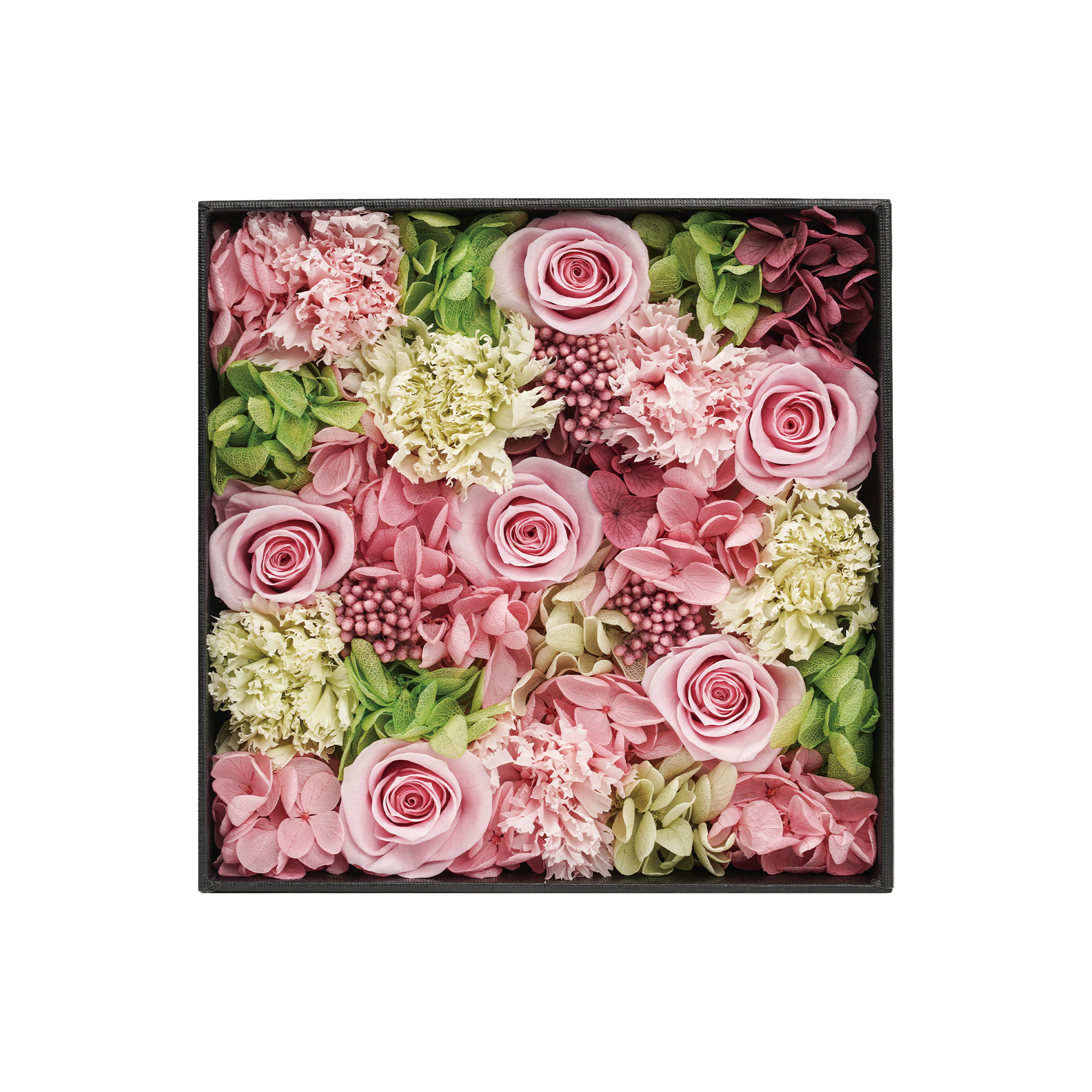 Innehåll: Blomsterlåda med konserverade Hortensior, Ros, Nejlikor