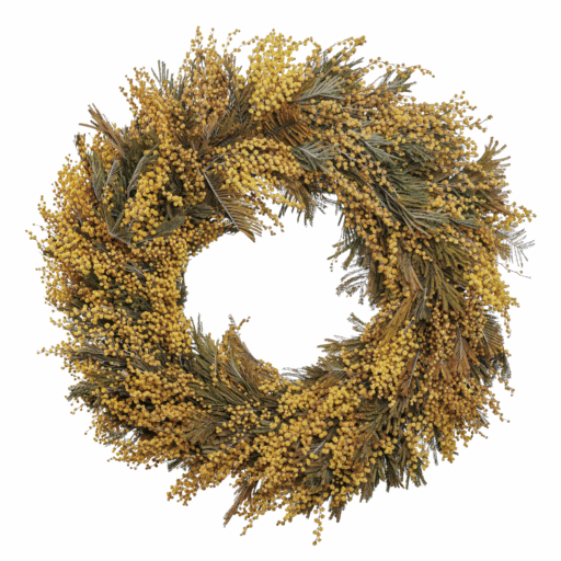 Handbunden krans av konserverad Mimosa / dörrkrans / dekoration