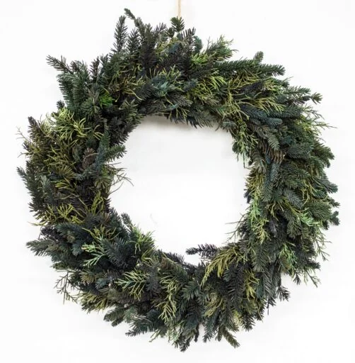 Handbunden krans av konserverad Tall / dörrkrans / dekoration