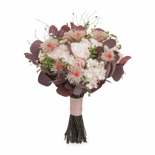 Brudbukett med konserverade Ros ,Hortensia, Risblomma, Eucalyptus,Garuga Forresti