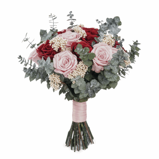 Brudbukett med konserverade Ros ,Risblomma, Eucalyptus