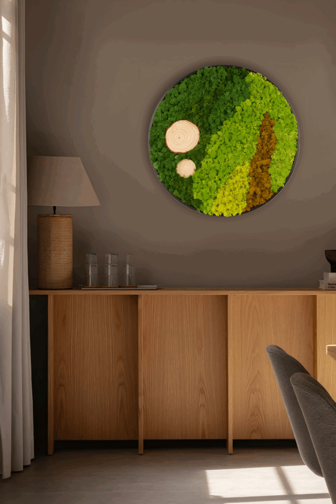Föreställ dig en inomhusträdgård som aldrig vissnar. En grön vägg som inte kräver vatten. En mossinstallation som förvandlar rummet – och förblir lika vacker år efter år.