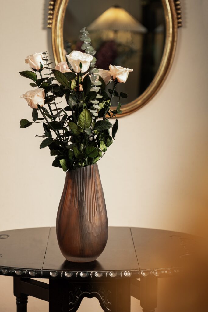 Våra konserverade produkter kräver varken vatten, ljus eller jord – vilket gör dem till ett extremt lättskött alternativ. De behöver inte beskäras, gödslas eller vattnas och håller sig vackra under lång tid utan regelbunden tillsyn.