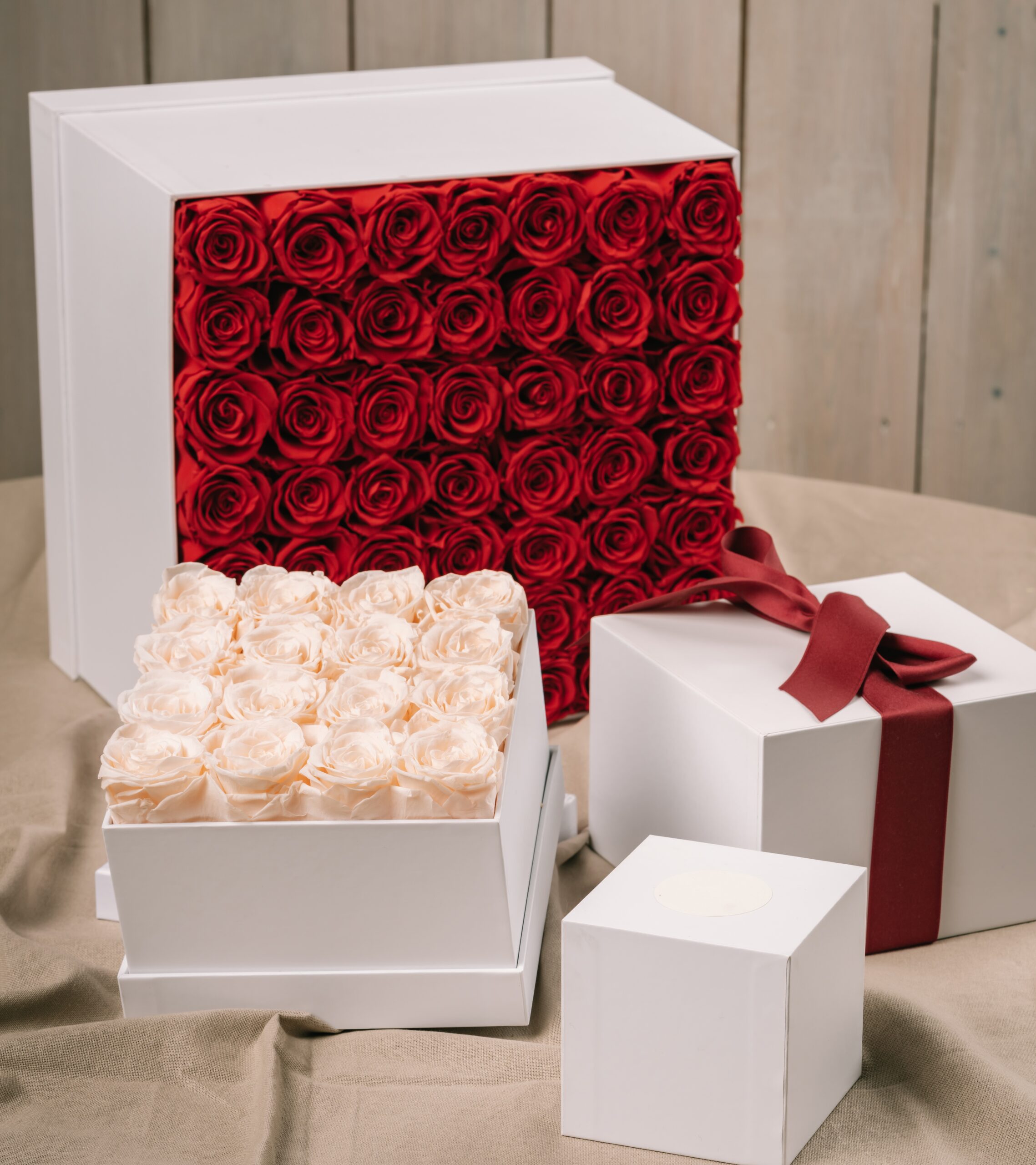 Exklusiva blomsterlådor till deras VIP-kunder – en elegant present med evig blomsterprakt.